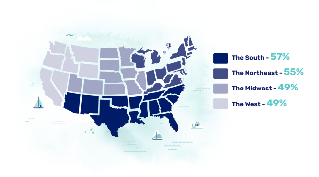 - While the Midwest (48.9%) and West (49%) report slightly lower rates.