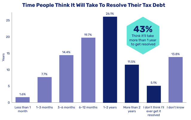 We know this may sound difficult. In LendEDU’s 2025 survey, 43% of our respondents thought it would take them more than one year to resolve their issues with the IRS. That’s a long time! The good news is, as long as you start submitting your paperwork and touching base to create a plan, you can be in good standing within a few days or even hours.